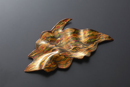 皮をうるしの重ね塗りにより強度をつけ、器にした菓子皿。 日本の古くからある技法の一つを甦らせた 大変珍しい作品。