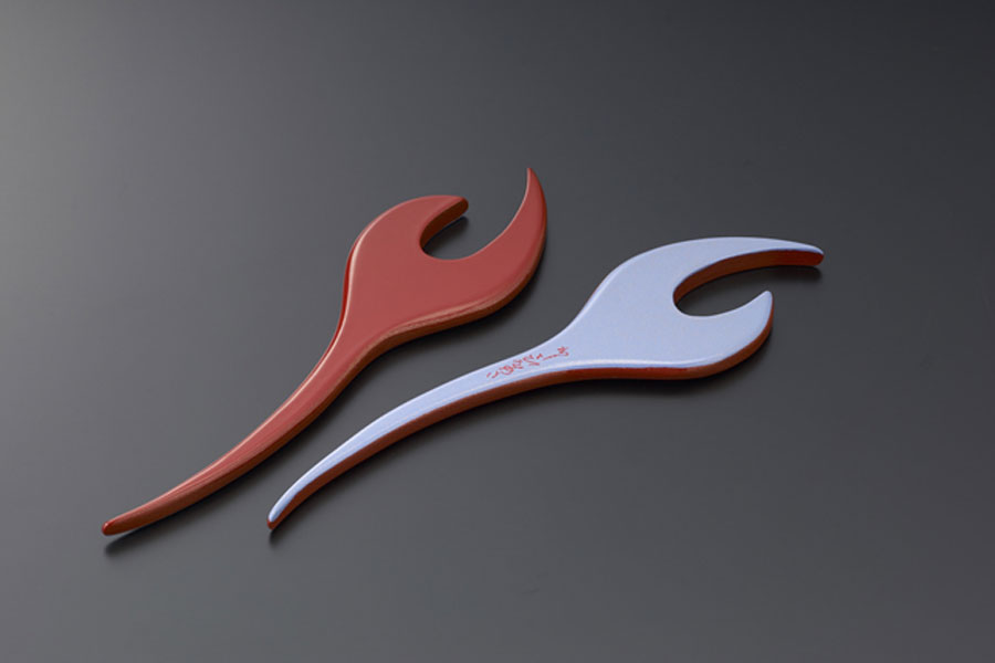 表 博耀デザインの得意とするデザインコンセプト「形になる形」のフォルムのかんざしとして作られた。 インテリアとしても。越前うるし塗り仕上げ。