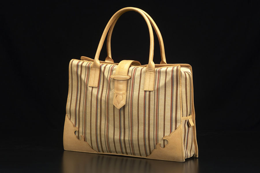 ヌメ皮と、金らん地を組み合わせたかばん。 使い心地にこだわり、10年の歳月をかけて完成された。 内部ポケットは6つ。 高級金らん地部分は、お好みに合わせてオーダーメードできる。 職人の匠の技による精巧さと頑丈さ。 表 博耀デザインによる優雅さをもつ。 ネオジャパネスクポリシーを持つステイタス、全てをあわせ持つ作品。